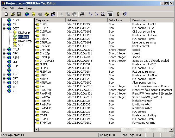 Tags are the fundamental building blocks in a CPUtilities project. Each I/O point is