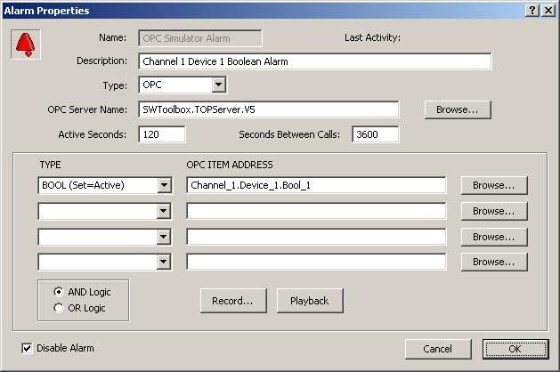 process exceptions may be combined into a single alarm using "AND / OR" logic.